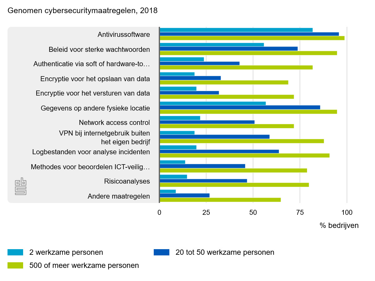 In de derde editie van de Cybersecuritymonitor schetst het CBS een beeld van de ICT-incidenten waar bedrijven en personen slachtoffer van zijn geworden en de maatregelen die ze ertegen nemen. Bedrijven nemen steeds meer maatregelen om zich te weren tegen cyberaanvallen van buitenaf. Vooral middelgrote bedrijven maken een inhaalslag met de invoering van authenticatie via soft- of hardwaretokens. Daarnaast daalt het aantal ICT-veiligheidsincidenten door een aanval van buitenaf.