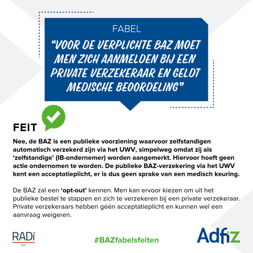 BAZ fabel 4: Voor de verplichte BAZ moet men zich aanmelden bij een private verzekeraar en geldt medische beoordeling