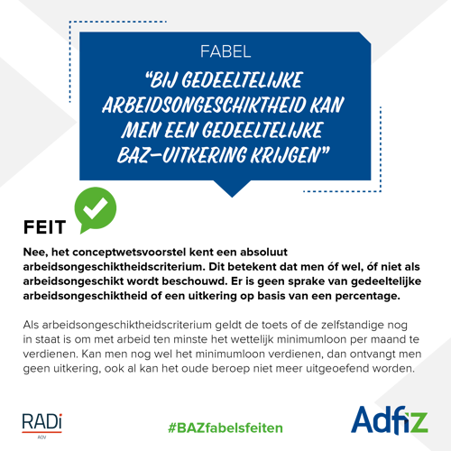 BAZ fabel 5: Bij gedeeltelijke arbeidsongeschiktheid kan men een gedeeltelijke BAZ-uitkering krijgen
