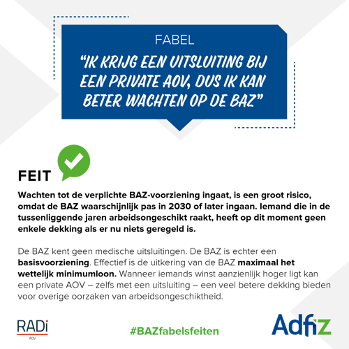 BAZ fabel 6: Ik krijg een uitsluiting bij een private AOV, dus ik kan beter wachten op de BAZ