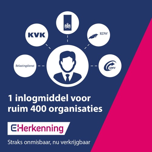 Sinds enige tijd zijn we partner van de voorlichtingscampagne eHerkenning. Deze campagne is een samenwerking met MKB Nederland, VNO-NCW, Logius en het ministerie van Binnenlandse Zaken en Koninkrijksrelaties. eHerkenning is de nieuwe standaard voor ondernemers die willen communiceren met de Rijksoverheid, gemeenten, provincies, waterschappen en andere publieke organisaties.