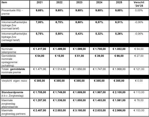 - De procentuele premie voor de Wet langdurige zorg (Wlz) blijft gelijk, volgens afspraak.