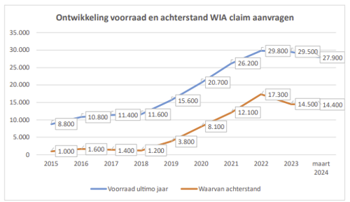 Het UWV, de uitvoeringsinstelling die belast is met de WIA-claimbeooordeling, kampt met forse achterstanden. De minister van SZW begint haar brief positief: “In 2023 heeft UWV zo’n 14.000 (ruim 20%) meer WIA-claimbeoordelingen kunnen doen dan in 2022. Dat vind ik goed nieuws, want hierdoor hebben veel mensen sneller duidelijkheid gekregen over hun recht op een WIA-uitkering.”